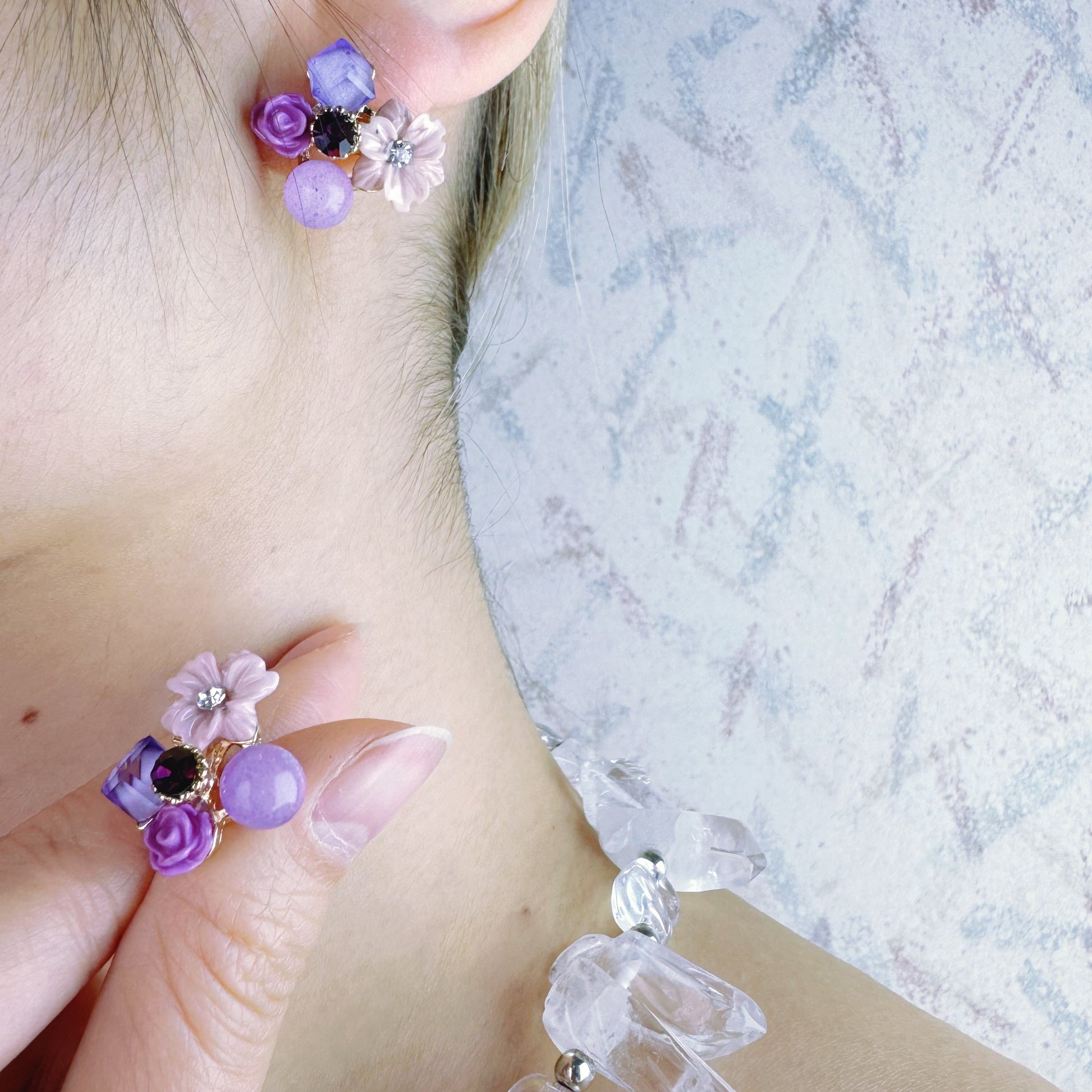 These crystal earrings bloom with delicate flower elements, intricately designed to capture the essence of nature's beauty. At the heart of each blossom lies a sparkling Amethyst crystal , adding a touch of regal purple to the design. The combination of the intricate flowers and the Amethyst crystal creates a look that's both whimsical and elegant, perfect for adding a touch of charm to any outfit. Whether you're dressing up for a special occasion or simply want to add a pop of color to your everyday look, these Amethyst Crystal Flower Earrings are sure to make you shine.