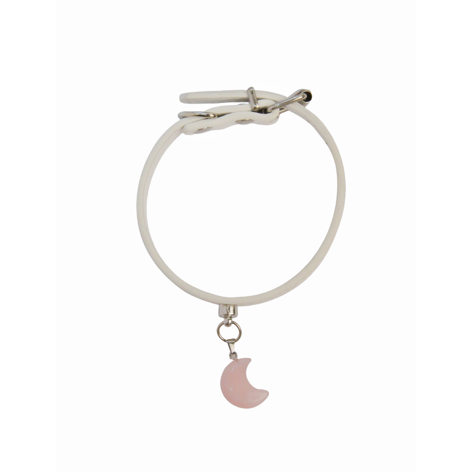 This collar boasts an enchanting moon-shaped pendant, embellished with a genuine rose quartz stone, renowned for its soothing and loving vibrations. The moon design symbolizes intuition and gentle guidance, making this collar a perfect blend of aesthetics and spiritual essence. Crafted from high-quality, durable materials, it ensures a comfortable fit for your pet. Whether strolling under the night sky or basking in the daylight, this collar adds a touch of mystique and elegance to your pet's everyday adventures.