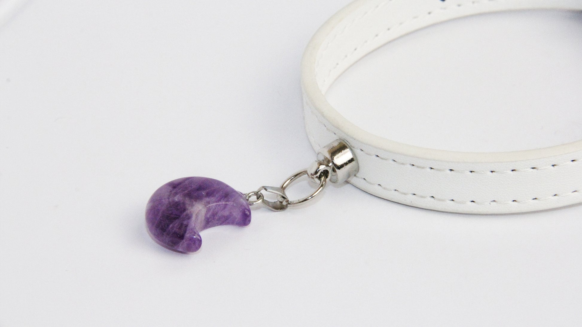 Personalized Gemstone Collar Charm for Dogs Pet Gift Moon Shape Amethyst Pendant Pet Collar
