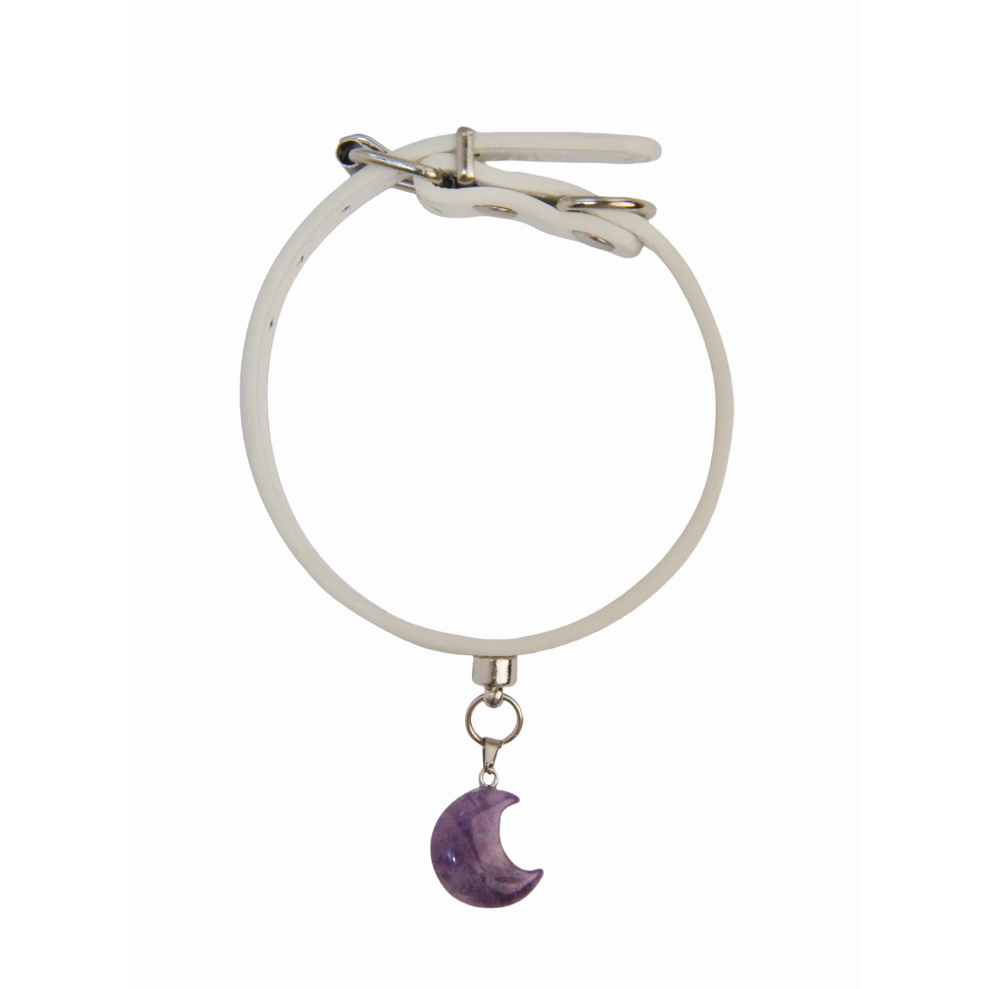 This collar features a delicate moon-shaped pendant adorned with a shimmering Amethyst stone, adding a touch of regal charm to your pet's appearance. The Amethyst Crystal, known for its calming properties, is believed to bring peace and positive energy to your furry friend, ensuring they feel happy and protected. Crafted with comfort in mind, this collar is designed to be lightweight and easy to wear, making it perfect for everyday use. Treat your pet to the luxury they deserve with the Moon Shape Amethyst Pendant Collar, a stylish accessory that not only enhances their beauty but also brings them a sense of well-being and good luck.